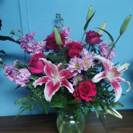 Price: $200.00 Lily's Roses (standard comes with 1 dz roses with stargazer lilies) Product Tags: Same-day Delivery